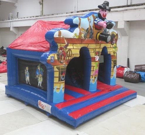 Salterino con scivolo frontale e ostacoli al suo interno. Dotato di copertura riparasole. Dimensioni (Profondita' x Larghezza x Altezza):5x5x4,6 m - Altezza scivolo: 1,7 m . Per info 3384050322